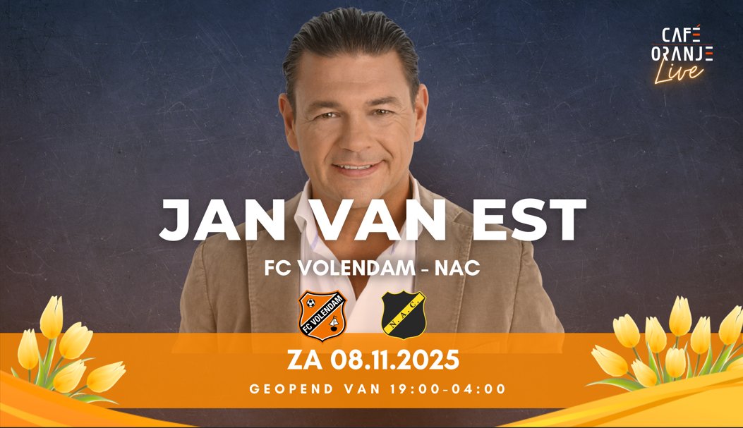Kom gezellig borrelen, voetbal kijken en sluit je zaterdag feestelijk af met een live optreden van Jan van Est in Café Oranje Breda.