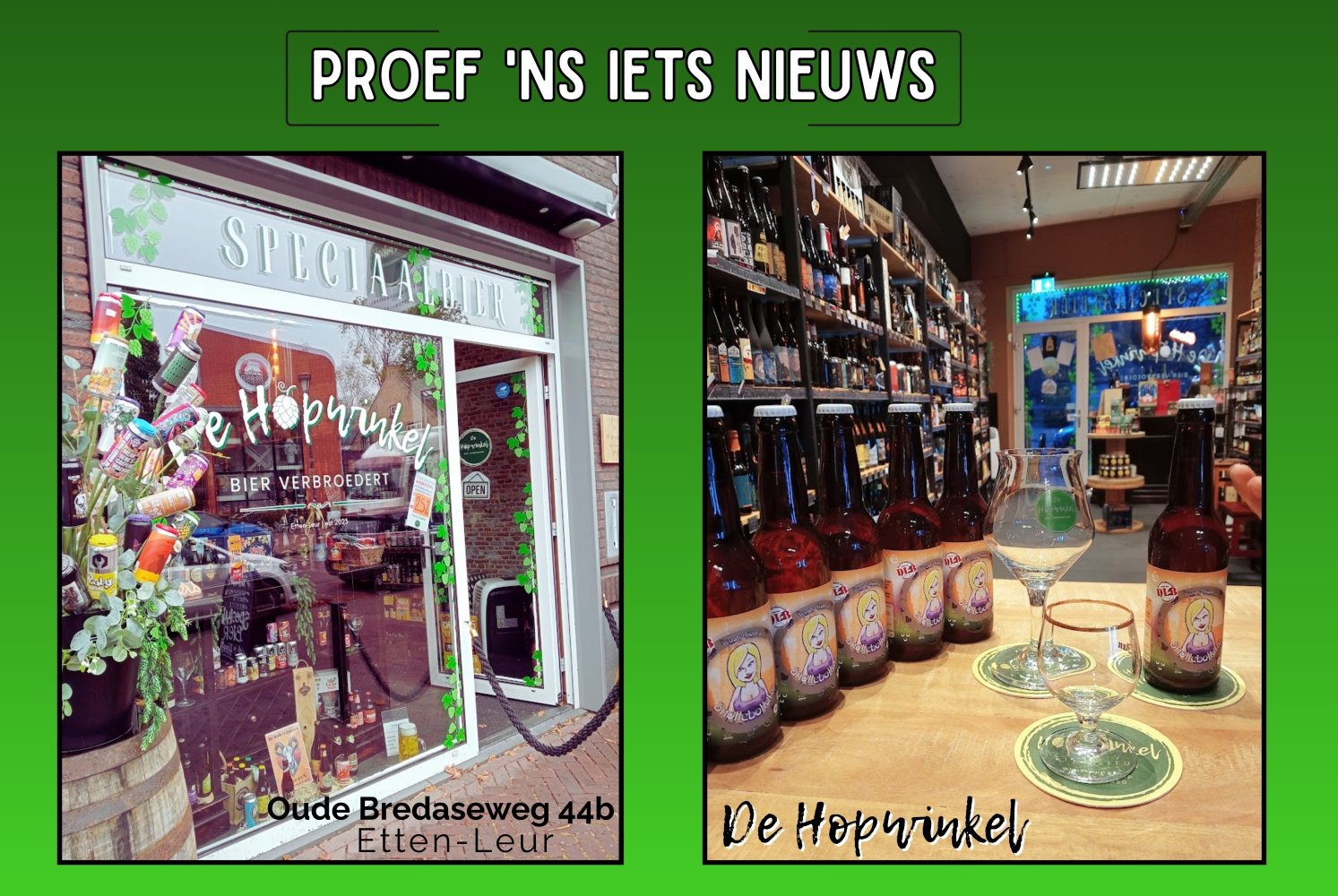 Proefglaasje speciaalbier: maak kennis met een andere bierstijl dan je normaal gesproken kiest. Verwen, prikkel en verras je smaakpapillen terwijl je rondneust in de grootste speciaalbierwinkel van Etten-Leur eo waar Arnold en Petra je graag adviseren en iedere vrijdag- en zaterdagmiddag een ander bier hebben klaarstaan dat jij gratis kunt proeven.