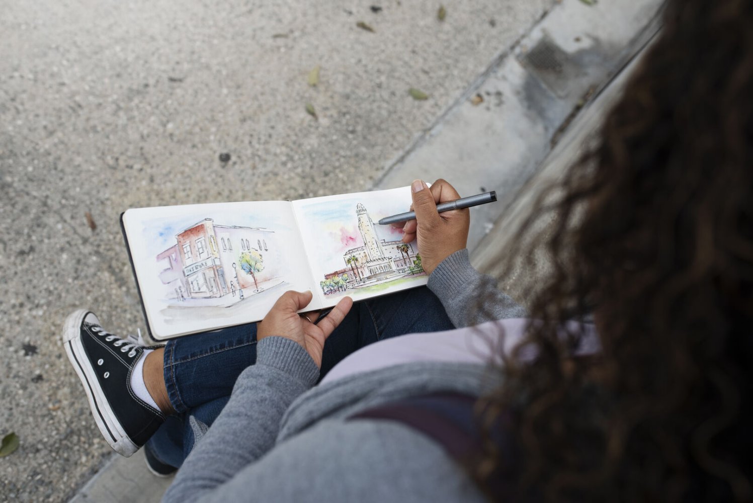 Je maakt kennis met de basisvaardigheden die elke urban sketcher nodig heeft: kijken als een kunstenaar, snel schetsen, kleur en diepte (met aquarel of markers), perspectief en compositie.