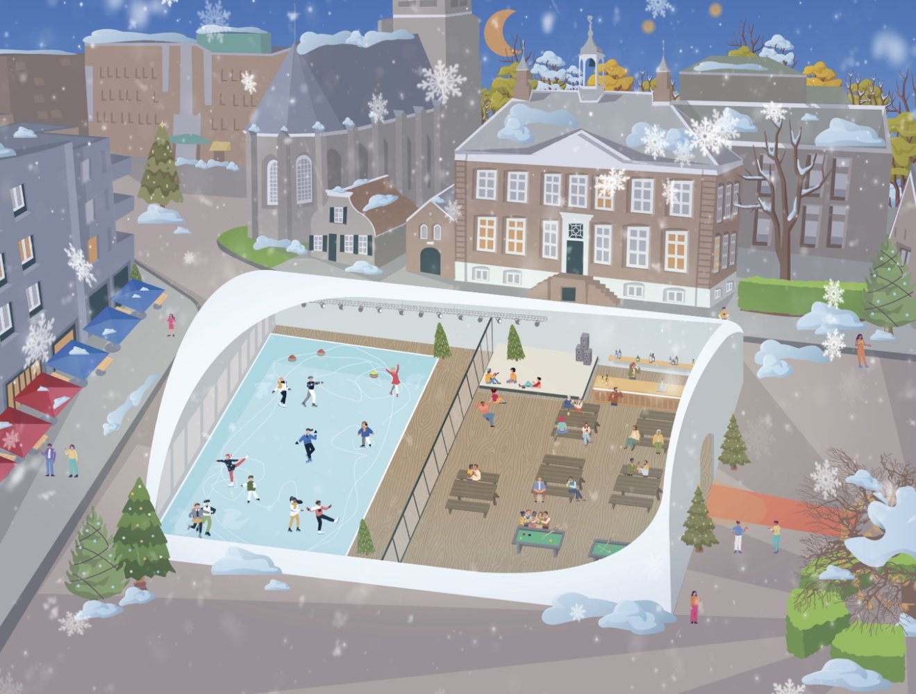 Voor jong en oud is er deze vier weken volop vertier. Met een schaatsbaan, muziek, een kerstmarkt, een curlingcompetitie, carnaval-on-ice en nog veel meer.