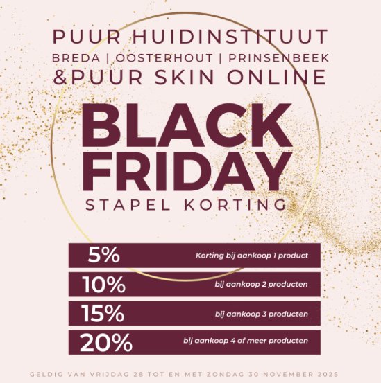 Het is bijna zover: vanaf vrijdag 28 november start onze jaarlijkse Black Friday-actie. Tijdens dit weekend shop je jouw favoriete huidverzorging met extra veel voordeel dankzij onze stapelkorting. Ook in onze webshop!