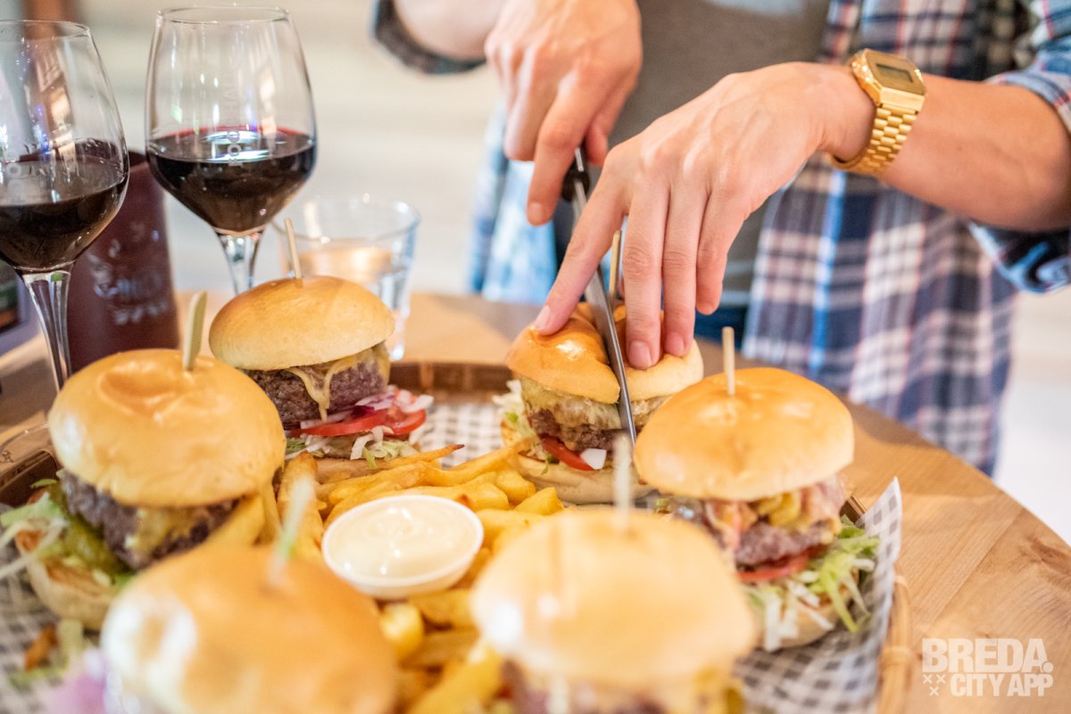 De frieten die in het midden liggen worden zelf gesneden en zijn ook super lekker en knapperig. De burgerbroodjes zijn zelf ontwikkeld in samenwerking met bakkerij Pol van den Bogaert uit Princenhage.