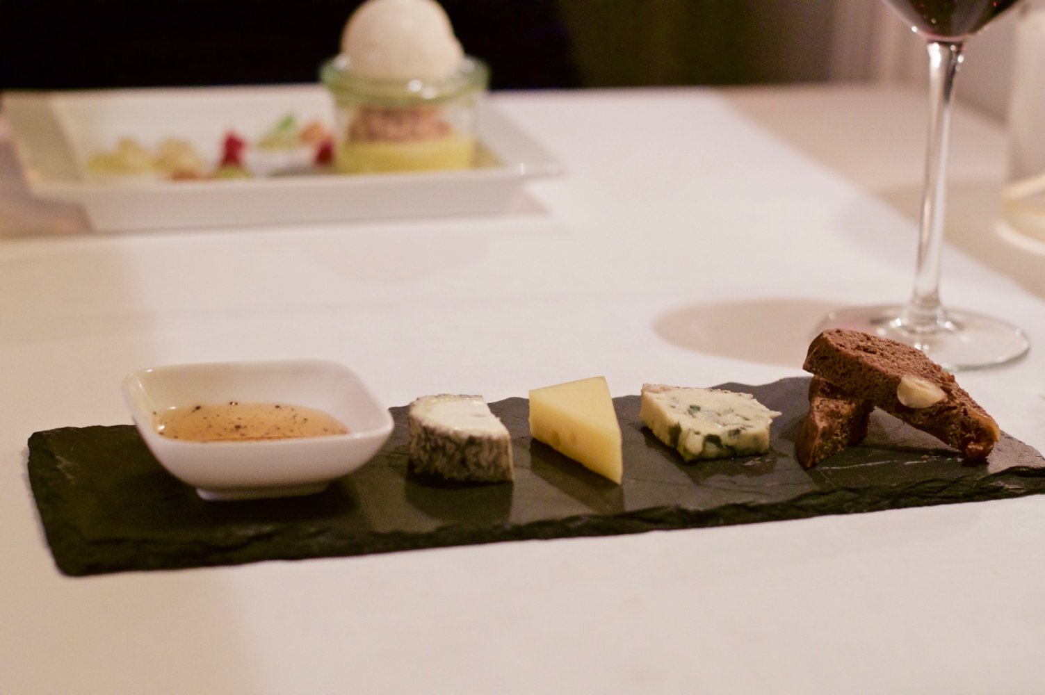 De laatste twee gangen bestonden uit een hartig en een zoet dessert. Het kaasplankje bestond uit een geitenkaasje (Touraine), de beste boeren belegen kaas van Nederland (volgens Richard) en een blauwschimmelkaasje genaamd Bleu de Causes. In de volksmond ook wel de Bleu de Coos genoemd. Smaakvolle kaasjes die werden vergezeld door de Per Tutti uit Italië, een smaakvolle, ronde rode wijn.