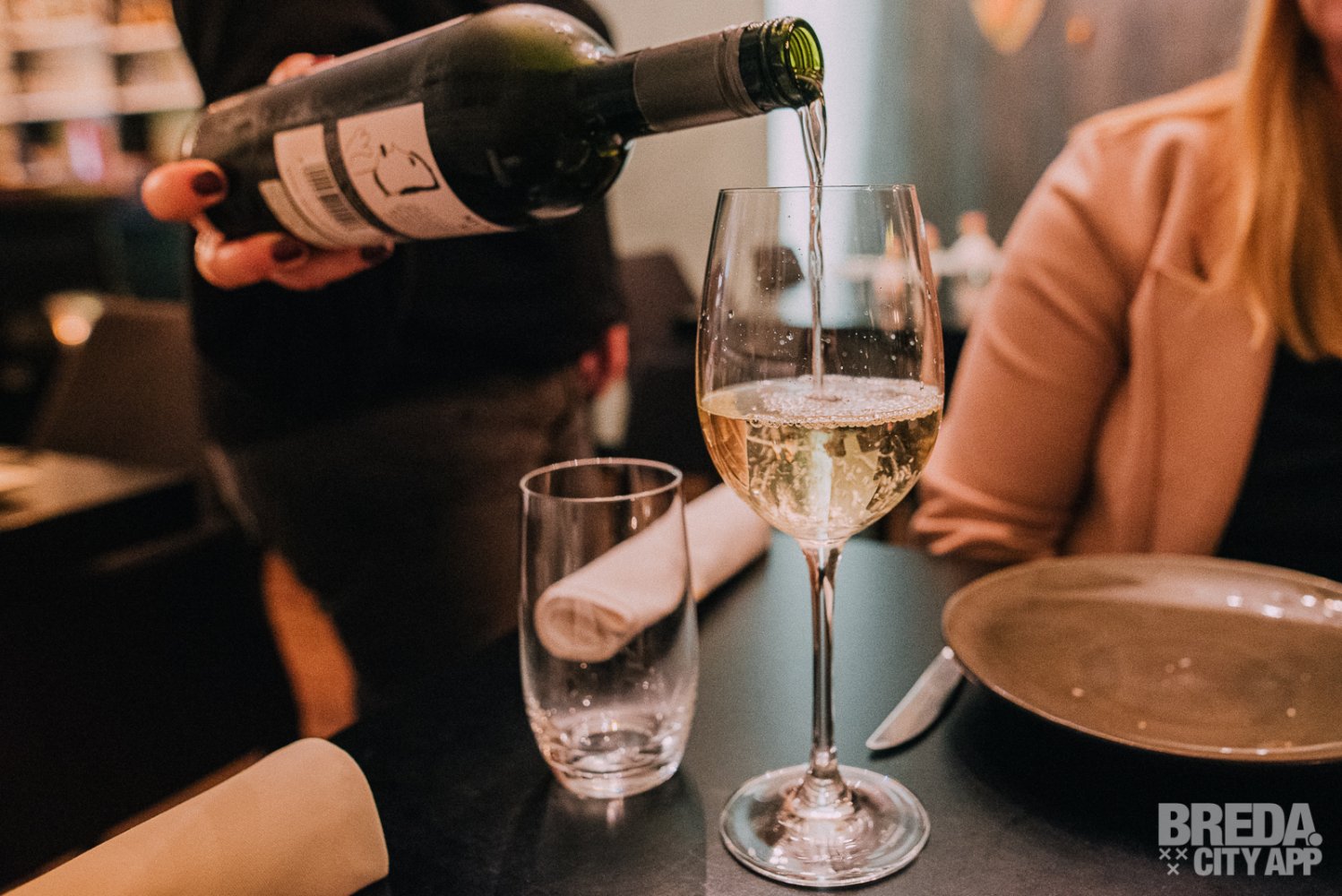 Bij binnenkomst worden we vriendelijk ontvangen door eigenaresse Wendy. We nemen plaats aan een mooi tafeltje in dit sfeervolle restaurant. De avond trappen we meteen feestelijk af en we beginnen met het huisaperitief: prosecco met komkommer. Het ziet er niet alleen heel mooi uit, maar zo smaakt het ook. Verrassend lekker! De frisse smaken van de komkommer passen perfect bij de licht zoete smaak van de prosecco. Daarnaast genieten we van de huisgemaakte crackers met sesam en tapioca. De mousse van kaffierlimoen zorgt voor een goede match.